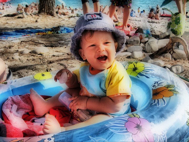 Volim vodu, volim da se brčkam. Prvo sam bio obazriv, a posle nisu mogli da me izbace van. Volim kad me potapaju celog, u početku sam sa gumom, ali više mi se sviđa kada sa tatom idem u more onako golišav, da mi ništa ne smeta. Osećam se slobodno. Zadnjih dana je bila kuknjava kada mi ne daju u vodu.