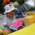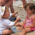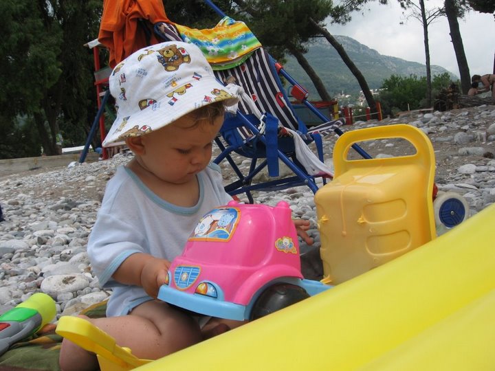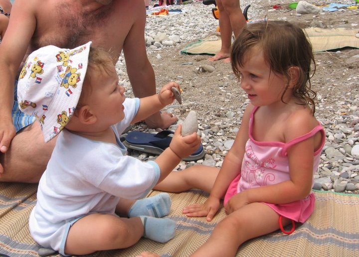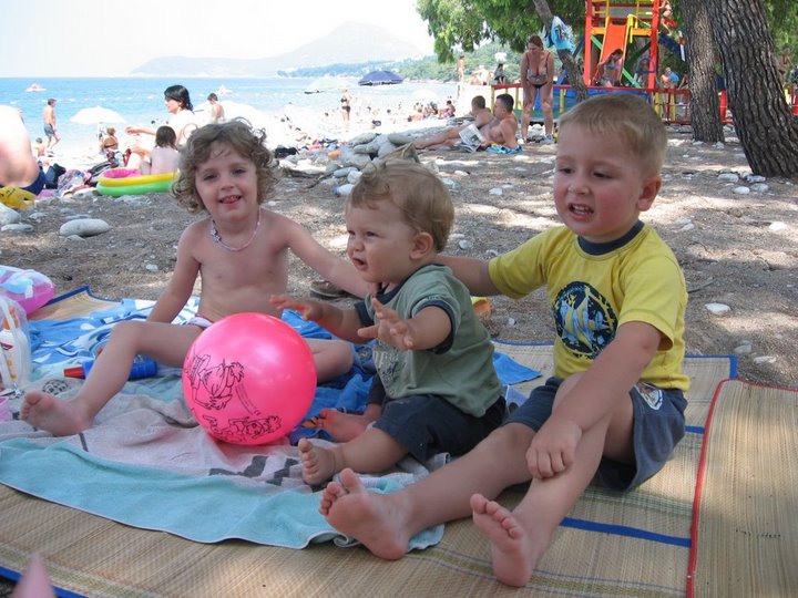 Imao sam i jednu drugaricu od 3 godine, i druga takodje. Igrali smo se lopaticama, grabuljama, koficama, kopali blago po plaži. Ali ja sam najviše voleo da se igram kamenjem.