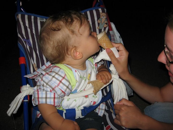 Uveče šetam svako veče do Bara. Tamo je pravi vašar i ja ne znam gde ću pre da gledam. U ringišpil, balerinu, kolca, prodavca ili devojčicu što ručka šećernu vunu. Sve mi je tako zanimljivo. Volim da šetam pa me mama i baka drže sa ručicu i ja teram gde hoću. Uglavnom za nekom curicom. Oni ručkaju sladoled, a ja kornet. Dala mi je mama jedno veče da liznem njen i mnogo mi se svidelo. Malo je hladnije od mog korneta. I hteo sam još i još i joooš al mama cicija neda mnogo.