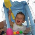 Kupili su mi svašta nešto...gumu dubak sa tendom, sa njom volim da se igram i u sobici, kamionče sa prikolicom, opremu za kopanje blaga...