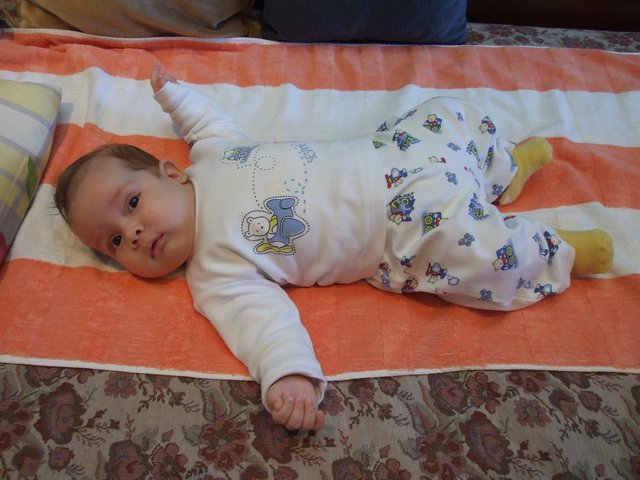 Počeo sam da se okrećem. Sada mi je to glavna zanimacija. Stalno bih na stomačić. Kaže mama da sam više dosadan. Tetkici sam presladak kada se okrenem. Samo se smeje. Pa kako sam to sladak ako joj je toliko smešno? Mama je u dilemi da li smem toliko da budem na stomačiću, sa podignutom glavicom, zbog mojih kukova i širokog povijanja. Pitala je doktoricu pre neki dan i kaže da smem samo par puta na dan po par minuta. Ali šta će ona kad ja stalno hoćuuuuuuuuuu... čak sam par puta i zaspao kada sam se okrenuo. Podignem glavicu, kada se umorim zaronim u peškir i super. A naučio sam i rukice da stavim ispred sebe. A tek što balaaaaaaaaviiiiiiiim....