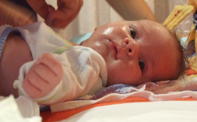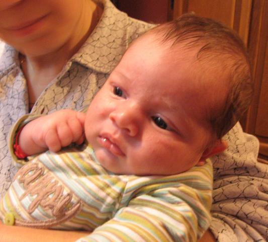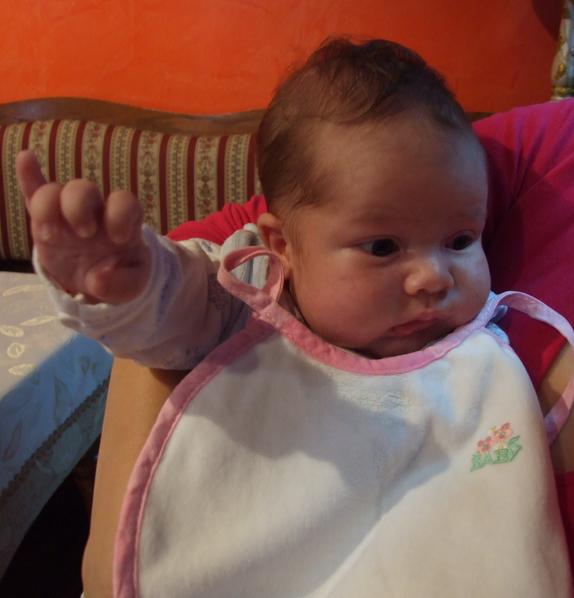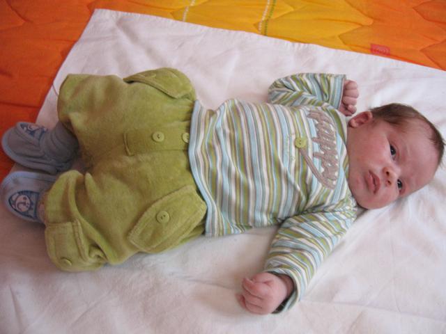 Danas sam imao posetu. Prabaka i pradeka došli su da me vide i potrvde kakav sam slatkiš. Oduševljeni su. Lepo im je tetkica pričala. Nego bakica umislila da sam ja veeeeejiki momak i sve krpice koje sam dobio mi je menjala. Jesam ja bucko, ali ipak sam maji.