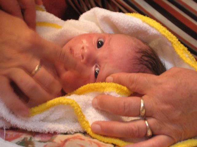 Jooooj a što vojim da se kupam....uh to je nešto supeliška. Skinu mi pampers, skinu mi pelene, benkice i gologuz uletim u moju kadicu. Baka me ispljeska po guzi, opele mi kosicu, stomačić, nogice, rukice...sve redom kako dolikuje, onda me dluga bakica izmaže kremicama, tetkica me očešlja, namesti mi flizuricu i onda sam spreman za grad! ...ovaj mleko. Isisam se malčice i zaspim. Mmmm...što mirišem.